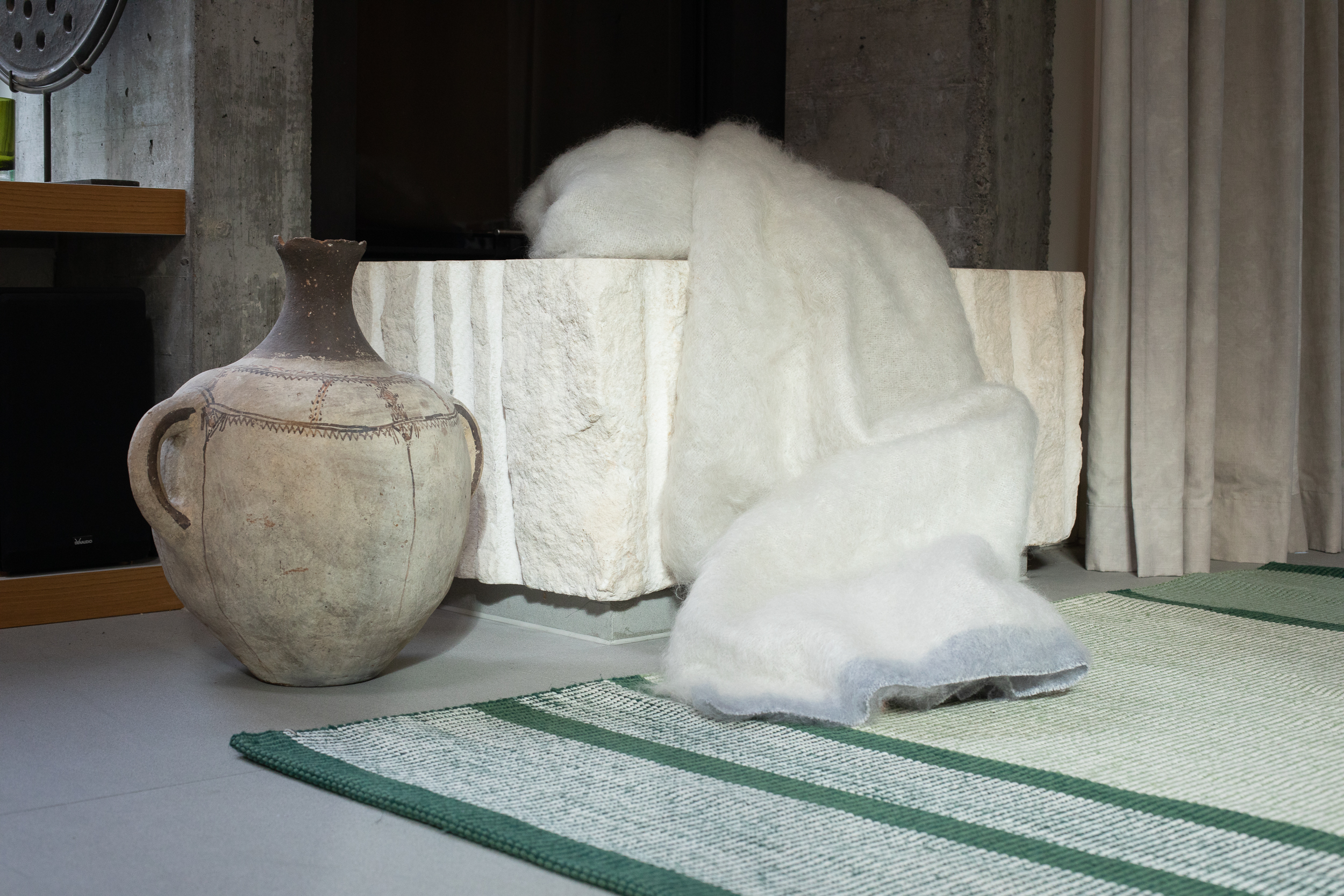 mohair wool comes from angora goats. mohair means “the best fleece”. the spun yarn made of mohair fibres has small ringlets, so-called loops. these are dry-roughened with natural thistle and torn open in the process – this makes them fluffy and strengthens the fibre bond. the effect: the mohair blanket hardly loses any hair. available in various colours, CHF 960.